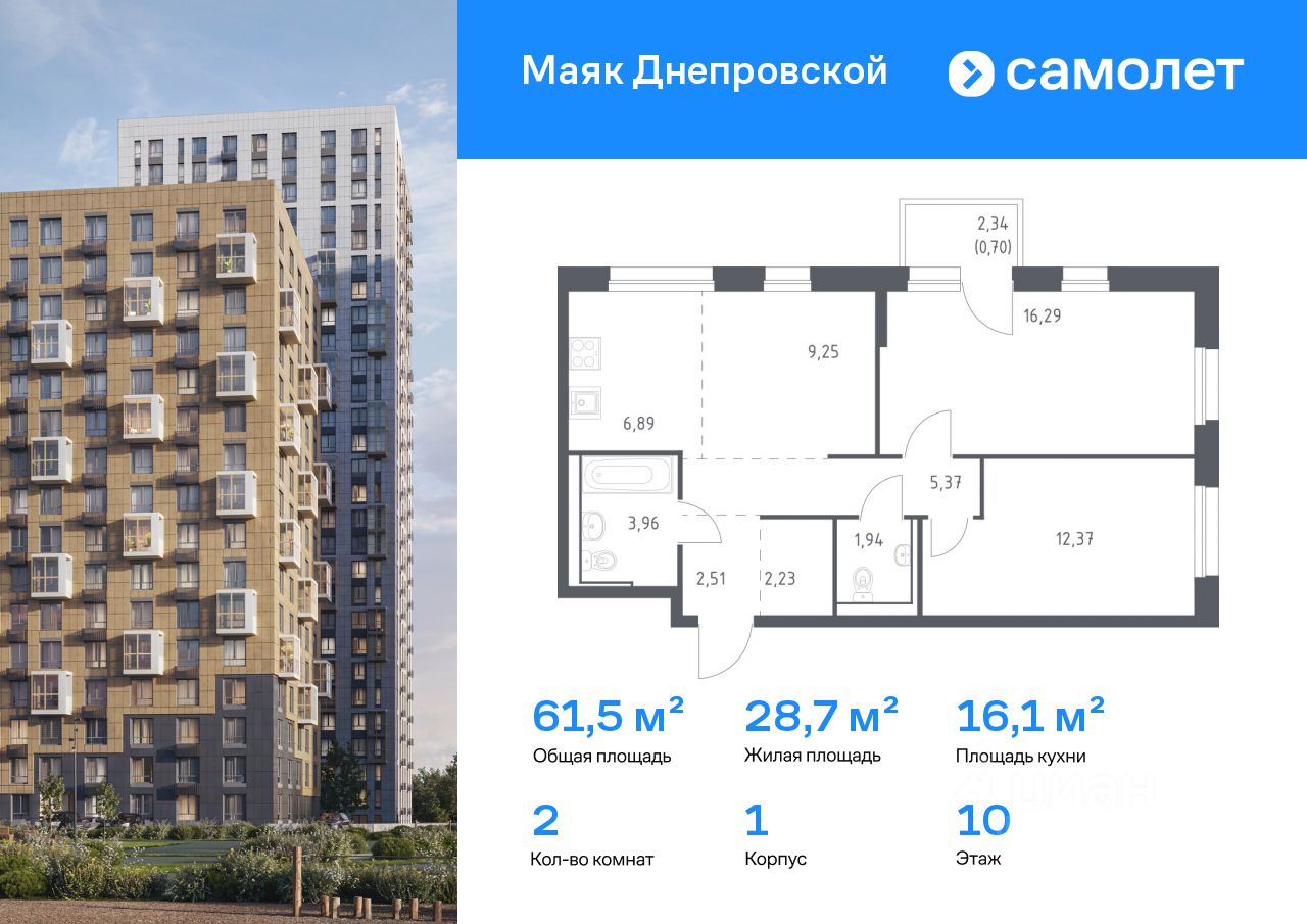 Строим кварталы для жизни с заботой о будущем. Предлагается 2-комнатная квартира комфорт-класса 61,51 кв.м в корпусе 1 на 10 этаже, в ЖК "Маяк Днепровской"
