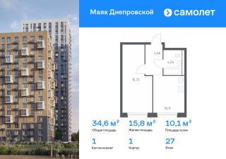 Строим кварталы для жизни с заботой о будущем. Предлагается 1-комнатная квартира комфорт-класса 34,58 кв.м в корпусе 1 на 27 этаже, в ЖК "Маяк Днепровской"
