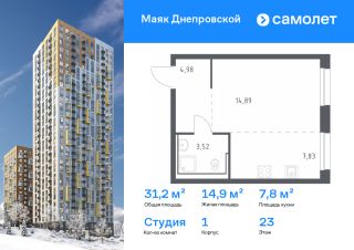 Строим кварталы для жизни с заботой о будущем. Предлагается квартира студия комфорт-класса 31,22 кв.м в корпусе 1 на 23 этаже, в ЖК "Маяк Днепровской"