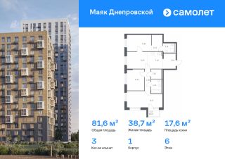 Строим кварталы для жизни с заботой о будущем. Предлагается 3-комнатная квартира комфорт-класса 81,58 кв.м в корпусе 1 на 6 этаже, в ЖК "Маяк Днепровской"