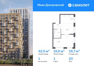Строим кварталы для жизни с заботой о будущем. Предлагается 1-комнатная квартира комфорт-класса 42,48 кв.м в корпусе 1 на 20 этаже, в ЖК "Маяк Днепровской"