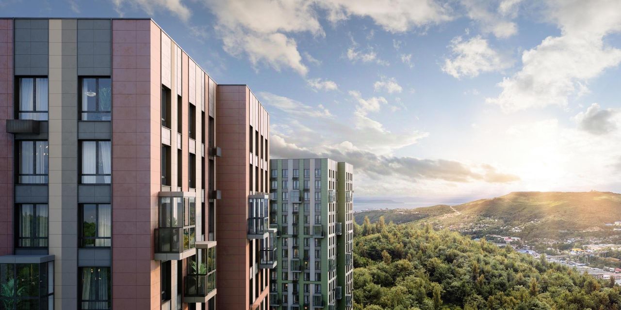 В жилом комплексе "Сабанеева 125" есть квартиры с индивидуальными зелеными террасами, увеличенными окнами и панорамными балконами для чаепитий с видом на сопки и залив.