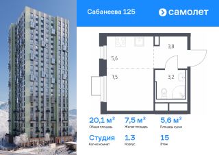 Строим кварталы для жизни с заботой о будущем. Предлагается квартира студия комфорт-класса 20,1 кв.м в корпусе 1.3 на 15 этаже, в ЖК "Сабанеева 125"