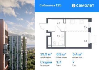 Строим кварталы для жизни с заботой о будущем. Предлагается квартира студия комфорт-класса 19,9 кв.м в корпусе 1.3 на 7 этаже, в ЖК "Сабанеева 125"