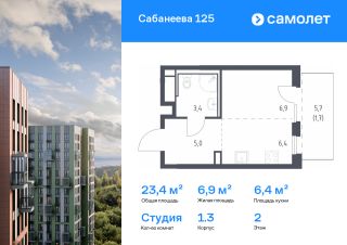 Строим кварталы для жизни с заботой о будущем. Предлагается квартира студия комфорт-класса 23,4 кв.м в корпусе 1.3 на 2 этаже, в ЖК "Сабанеева 125"