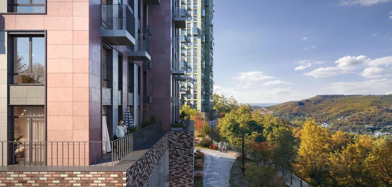 В жилом комплексе "Сабанеева 125" есть квартиры с индивидуальными зелеными террасами, увеличенными окнами и панорамными балконами для чаепитий с видом на сопки и залив.