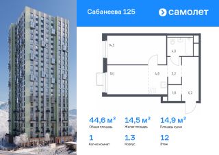 Строим кварталы для жизни с заботой о будущем. Предлагается 1-комнатная квартира комфорт-класса 44,6 кв.м в корпусе 1.3 на 12 этаже, в ЖК "Сабанеева 125"