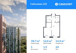 Строим кварталы для жизни с заботой о будущем. Предлагается 1-комнатная квартира комфорт-класса 38,7 кв.м в корпусе 1.3 на 24 этаже, в ЖК "Сабанеева 125"