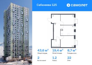 Строим кварталы для жизни с заботой о будущем. Предлагается 2-комнатная квартира комфорт-класса 43,6 кв.м в корпусе 1.2 на 22 этаже, в ЖК "Сабанеева 125"