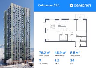 Строим кварталы для жизни с заботой о будущем. Предлагается 3-комнатная квартира комфорт-класса 78,2 кв.м в корпусе 1.2 на 24 этаже, в ЖК "Сабанеева 125"