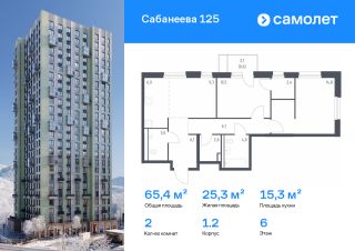 Строим кварталы для жизни с заботой о будущем. Предлагается 2-комнатная квартира комфорт-класса 65,4 кв.м в корпусе 1.2 на 6 этаже, в ЖК "Сабанеева 125"
