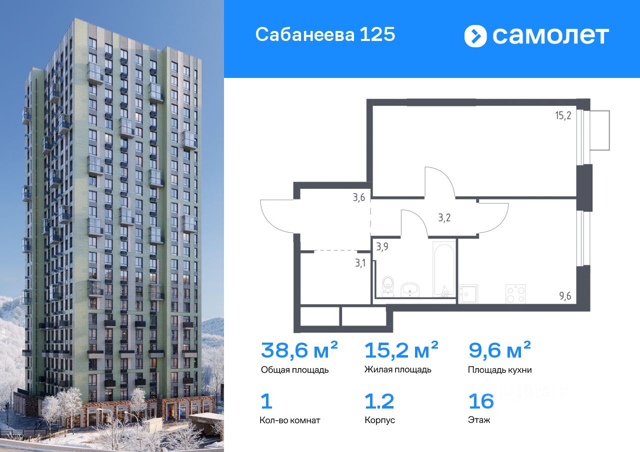 Строим кварталы для жизни с заботой о будущем. Предлагается 1-комнатная квартира комфорт-класса 38,6 кв.м в корпусе 1.2 на 16 этаже, в ЖК "Сабанеева 125"