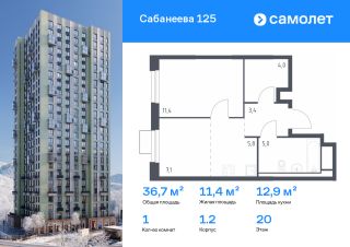Строим кварталы для жизни с заботой о будущем. Предлагается 1-комнатная квартира комфорт-класса 36,7 кв.м в корпусе 1.2 на 20 этаже, в ЖК "Сабанеева 125"