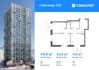 Строим кварталы для жизни с заботой о будущем. Предлагается 2-комнатная квартира комфорт-класса 48,8 кв.м в корпусе 1.1 на 3 этаже, в ЖК "Сабанеева 125"
