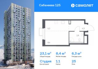 Строим кварталы для жизни с заботой о будущем. Предлагается квартира студия комфорт-класса 23,1 кв.м в корпусе 1.1 на 25 этаже, в ЖК "Сабанеева 125"