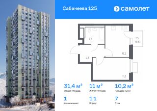 Строим кварталы для жизни с заботой о будущем. Предлагается 1-комнатная квартира комфорт-класса 31,4 кв.м в корпусе 1.1 на 7 этаже, в ЖК "Сабанеева 125"