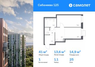 Строим кварталы для жизни с заботой о будущем. Предлагается 1-комнатная квартира комфорт-класса 41 кв.м в корпусе 1.1 на 25 этаже, в ЖК "Сабанеева 125"