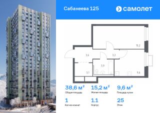 Строим кварталы для жизни с заботой о будущем. Предлагается 1-комнатная квартира комфорт-класса 38,6 кв.м в корпусе 1.1 на 25 этаже, в ЖК "Сабанеева 125"