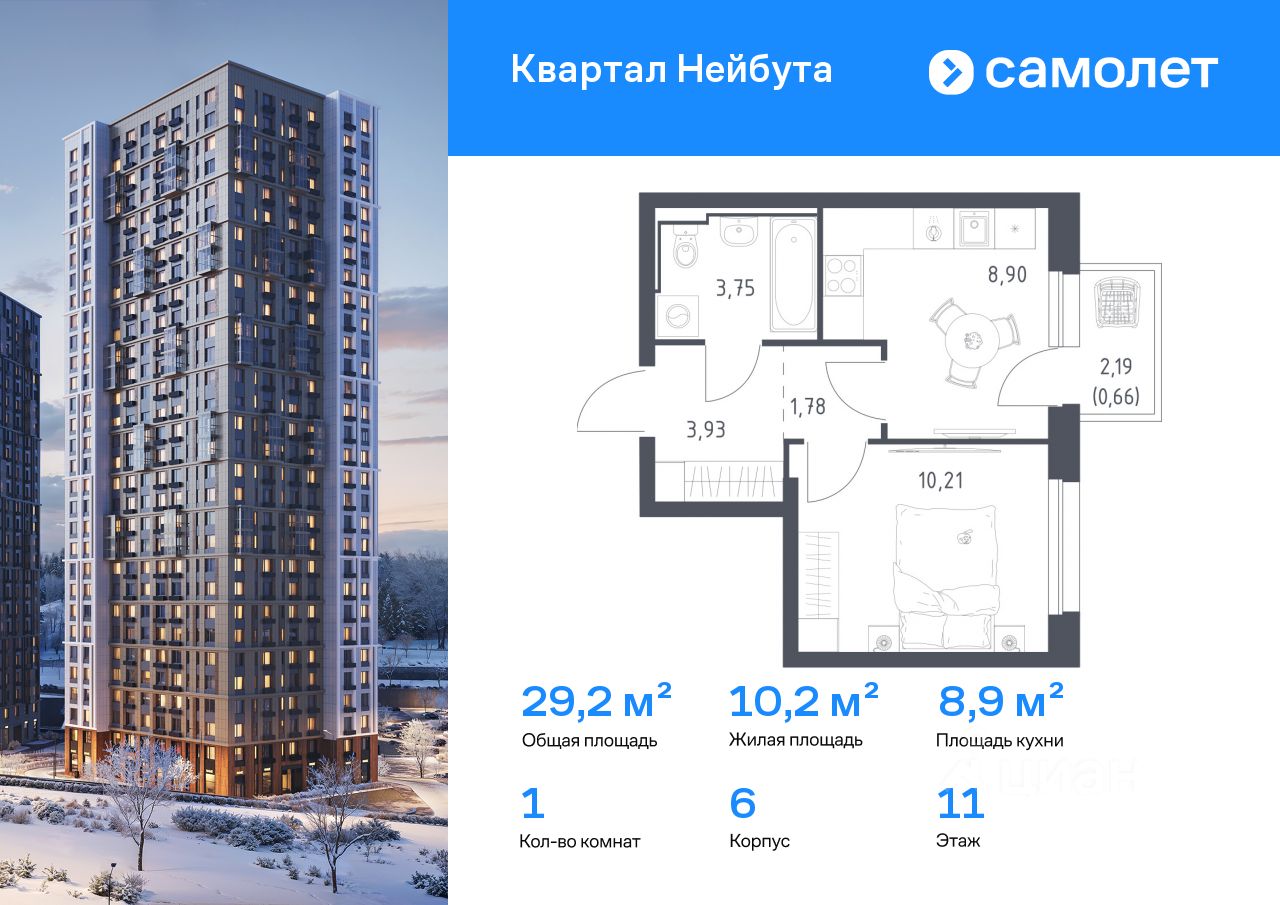 Строим кварталы для жизни с заботой о будущем. Предлагается 1-комнатная квартира комфорт-класса 29,23 кв.м в корпусе 6 на 11 этаже, в ЖК "Квартал Нейбута"