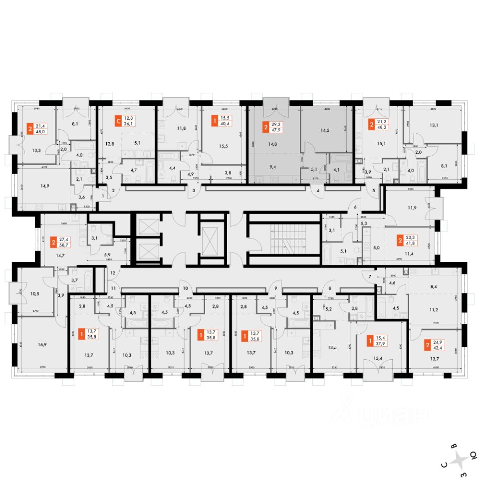 Продаётся 2-к квартира номер 357 общей площадью 47.9 кв.м. на 8-м этаже 22 этажного здания. Отделка Whitebox. Цена с учётом скидки.