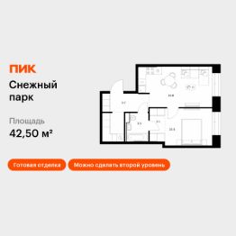 Продаётся 1-комн. квартира площадью 42,5 кв.м на 2 этаже 25 этажного дома (Корпус 4, Секция 2) проекта ПИК Снежный парк. Светлый просторный подъезд на уровне земли, функциональная планировка, большие окна, c отделкой.