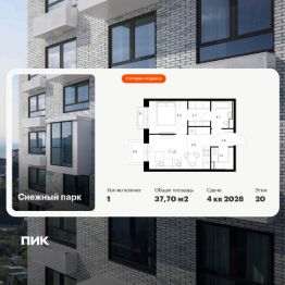 Продаётся 1-комн. квартира площадью 37,7 кв.м на 20 этаже 25 этажного дома (Корпус 4, Секция 2) проекта ПИК Снежный парк. Светлый просторный подъезд на уровне земли, функциональная планировка, большие окна, c отделкой.
