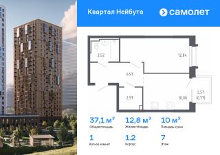 Строим кварталы для жизни с заботой о будущем. Предлагается 1-комнатная квартира комфорт-класса 37,07 кв.м в корпусе 1.2 на 7 этаже, в ЖК "Квартал Нейбута"