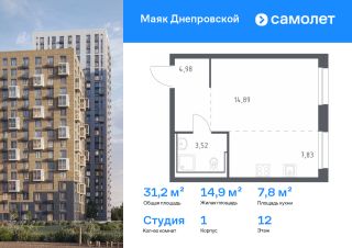 Строим кварталы для жизни с заботой о будущем. Предлагается квартира студия комфорт-класса 31,22 кв.м в корпусе 1 на 12 этаже, в ЖК "Маяк Днепровской"