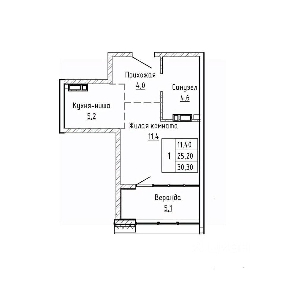 Общая площадь30,3 м²