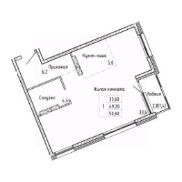 Продаётся 2-комнатная квартира в строящемся доме (Корпус 1), срок сдачи: II-кв. 2026, общей площадью 50.6 кв.м., на 25 этаже.