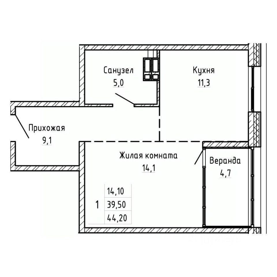 Жилая площадь14,1 м²