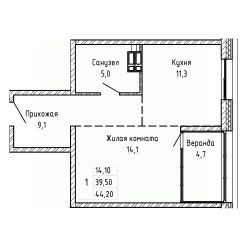 Общая площадь44,2 м²