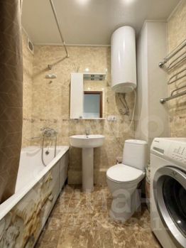 В ванной теплый пол, установлен водонагреватель на 80 литров.