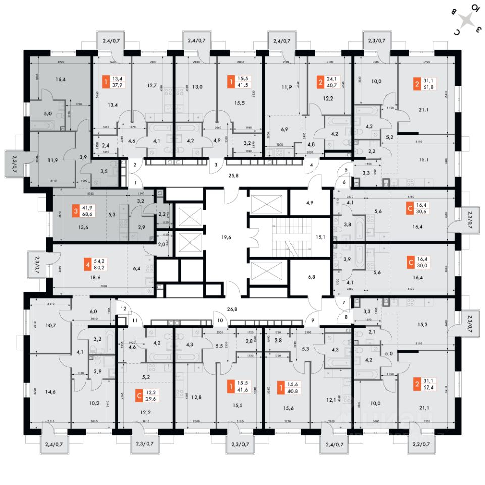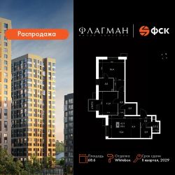 Продаётся 3-к квартира номер 121 общей площадью 68.6 кв.м. на 12-м этаже 30 этажного здания. Отделка Whitebox. Цена с учётом скидки.