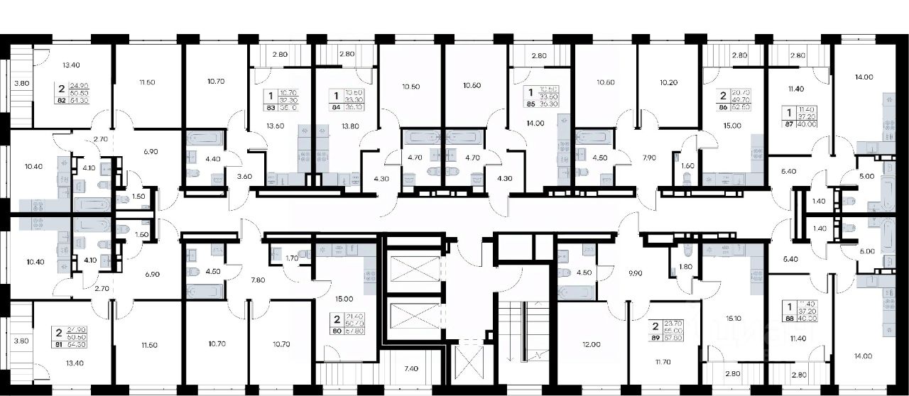 Цокольный этаж здания отведен под индивидуальные кладовые площадью от 3 до 7 квадратных метров, которые можно использовать для хранения сезонных вещей. Доступ к кладовым - на лифте с жилых этажей.