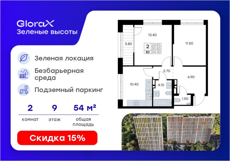 Узнайте больше в отделе продаж — выберите свою квартиру в GloraX Зелёные высоты уже сегодня!