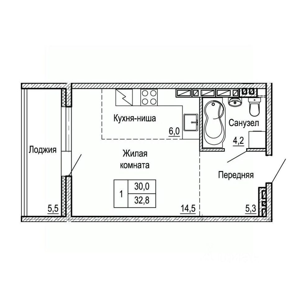Общая площадь32,8 м²
