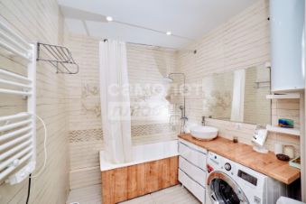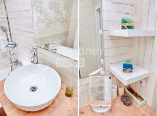 • Квартира оснащена пластиковыми окнами, софитами, натяжным потолком, ламинатом, выровненными стенами и теплым полом.