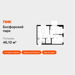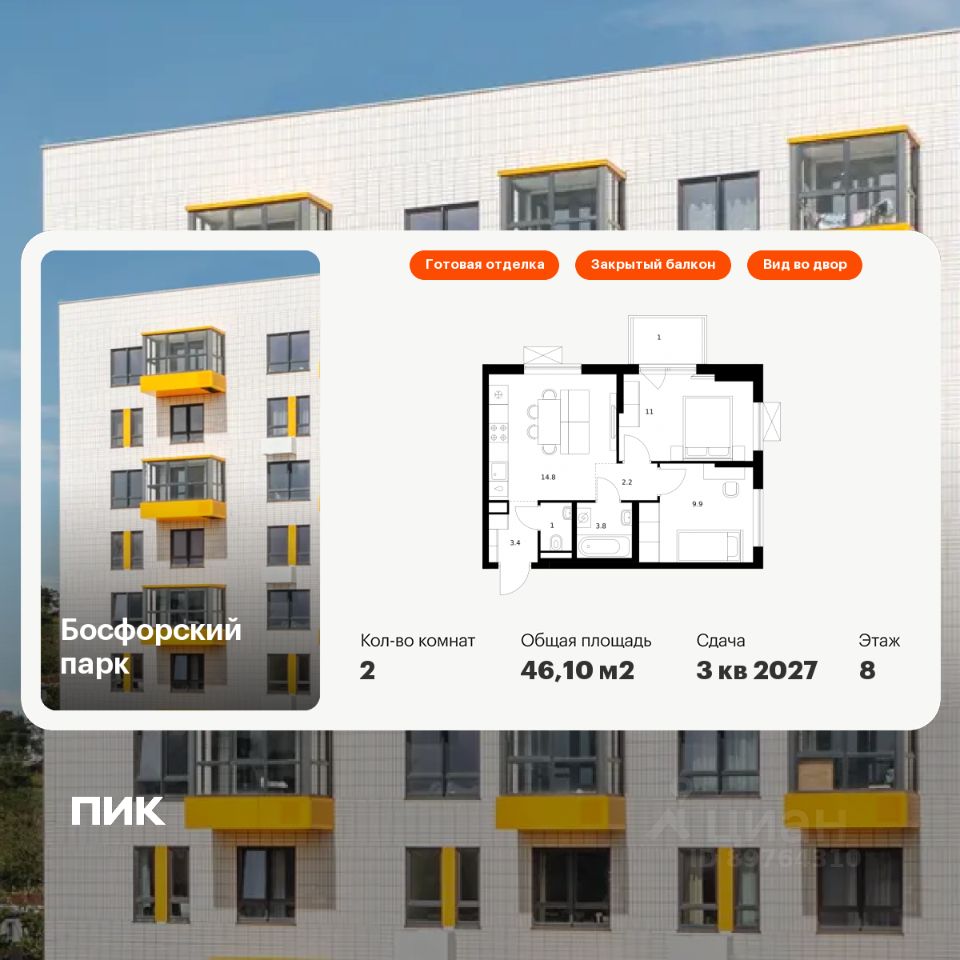 Продаётся 2-комн. квартира площадью 46,1 кв.м на 8 этаже 9 этажного дома (Корпус 9, Секция 1) проекта ПИК Босфорский парк. Светлый просторный подъезд на уровне земли, функциональная планировка, большие окна, c отделкой.
