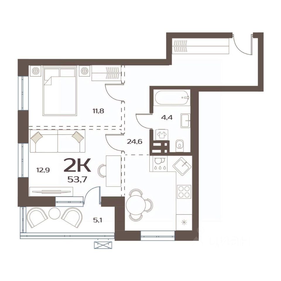 53,7 м²