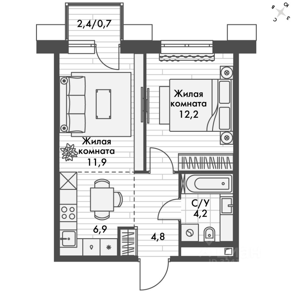- Линейная планировка - максимальная функциональность и удобство.