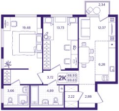 Здесь предусмотрена приватная родительская зона с большим количеством дневного света, гардеробом и санузлом, отдельная детская комната, подходящая для одного или двух детей, а также просторная гостиная место для уютных семейных ужинов и теплых вечеров в кругу близких. Благодаря наличию двух санузлов, утренние сборы пройдут без очередей. В прихожей предусмотрена гардеробная удобная зона для хранения вещей, помогающая поддерживать порядок.