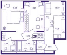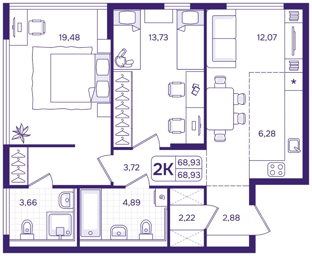 Здесь предусмотрена приватная родительская зона с большим количеством дневного света, гардеробом и санузлом, отдельная детская комната, подходящая для одного или двух детей, а также просторная гостиная место для уютных семейных ужинов и теплых вечеров в кругу близких. Благодаря наличию двух санузлов, утренние сборы пройдут без очередей. В прихожей предусмотрена гардеробная удобная зона для хранения вещей, помогающая поддерживать порядок.