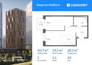 Строим кварталы для жизни с заботой о будущем. Предлагается 1-комнатная квартира комфорт-класса 40,71 кв.м в корпусе 1.1 на 24 этаже, в ЖК "Квартал Нейбута"
