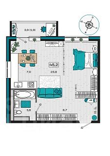 Общая площадь45,2 м²