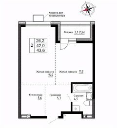 Продаётся 2-комнатная квартира в строящемся доме (Дом 2), срок сдачи: III-кв. 2026, общей площадью 43.3 кв.м., на 3 этаже. ЖК "Новый" - это: