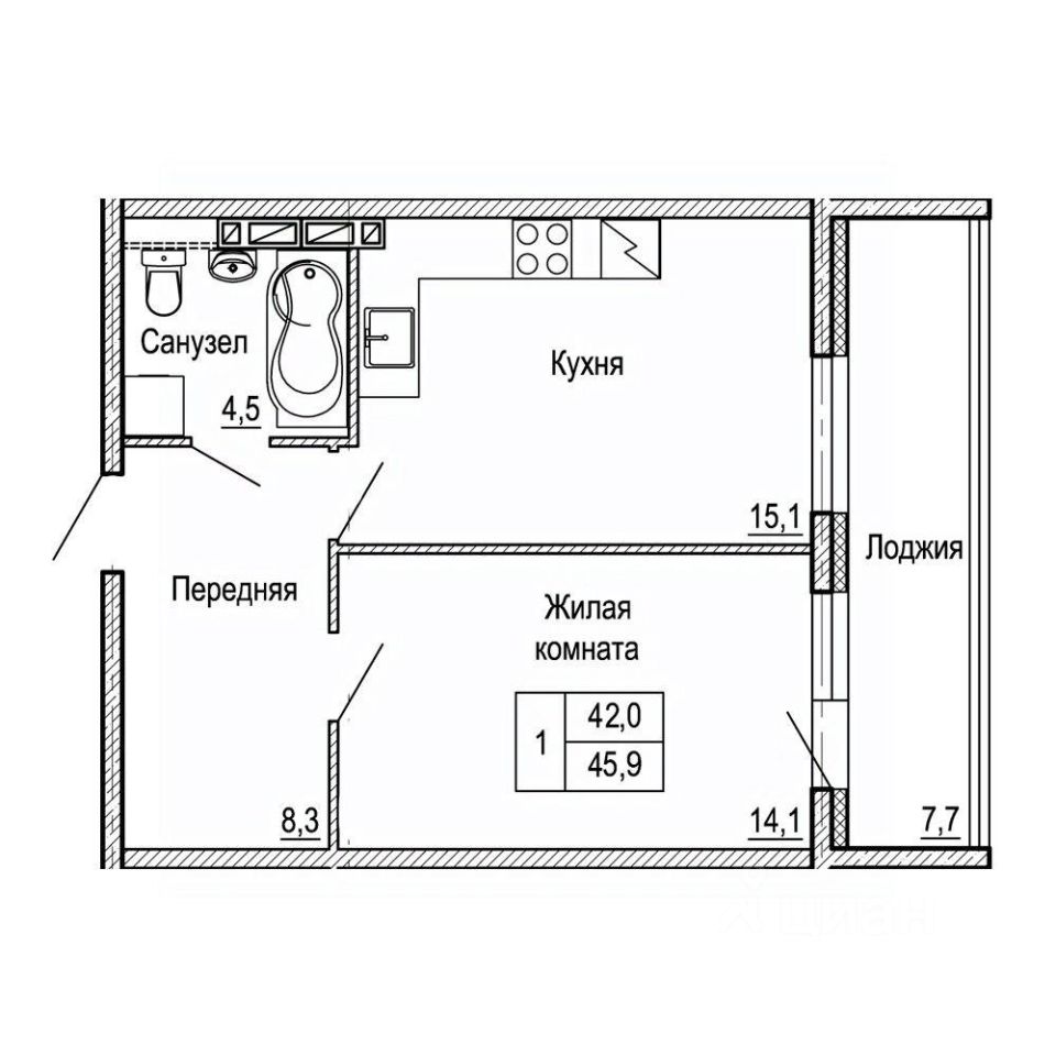 Общая площадь45,9 м²