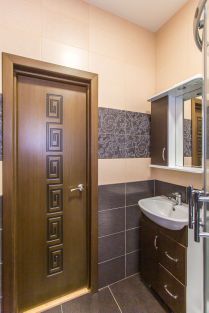 * Раковина с тумбой, полка с зеркалом, душевая кабина, унитаз, бойлер, электрический полотенцесушитель - в с/у