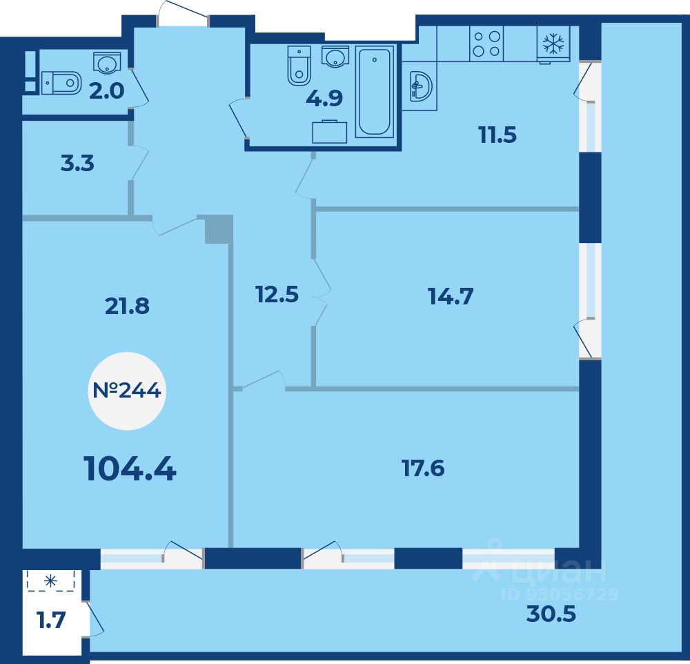 Продаётся квартира свободной планировки в сданном доме (Дом 1), срок сдачи: I-кв. 2024, общей площадью 104.4 кв.м., на 18 этаже. Жилой комплекс "Солярис" представляет собой 25-этажный дом в районе улицы Жигура.