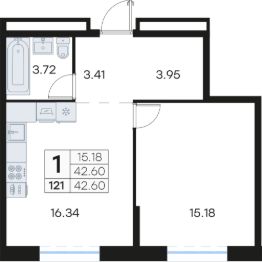 Продается 1-комн. квартира на 10-м этаже в квартале GloraX Клубный. GloraX Клубный - уникальный видовой проект с выделяющейся архитектурой в развитом районе Владивостока. Общая площадь лота составляет 42,60 кв. м, из которых 15,18 кв. м отведено под жилую и 16,34 кв. м под кухонную зону. Номер квартиры - 121.